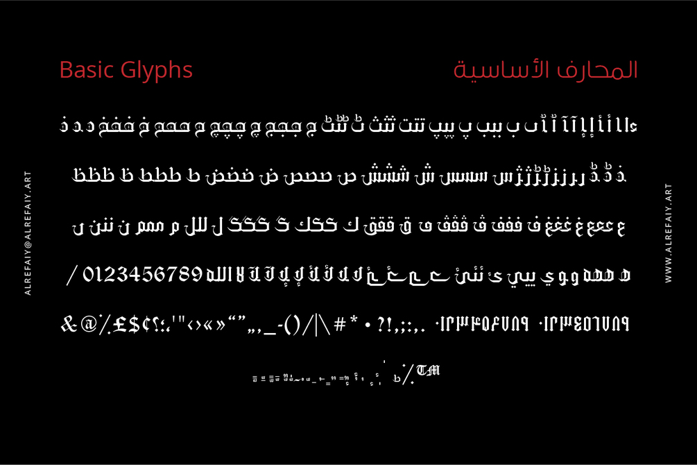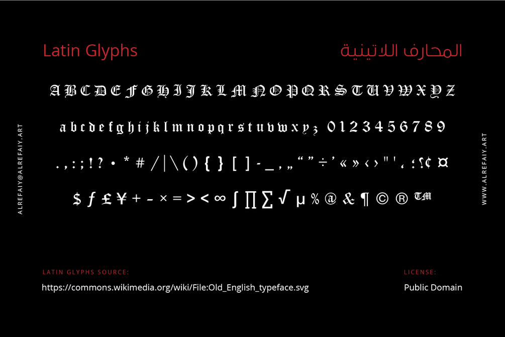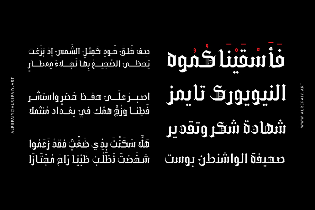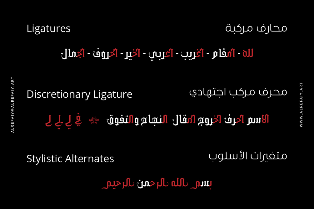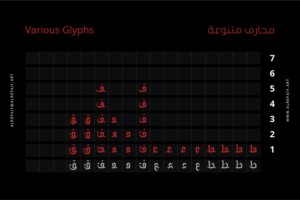 YR Gothic Arabic font draws inspiration from the Gothic calligraphic style, renowned for its timeless elegance. This style is characterized by a harmonious balance of thick and thin strokes, with a focus on vertical lines.